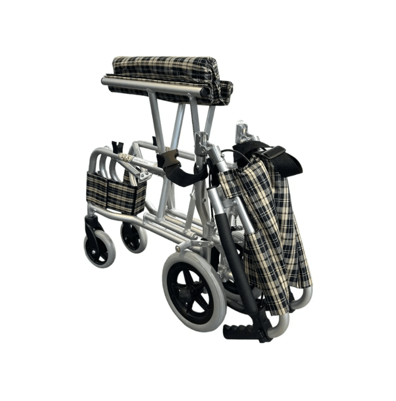 - مزود بحقيبة لحمل الكرسي بعد طيه.