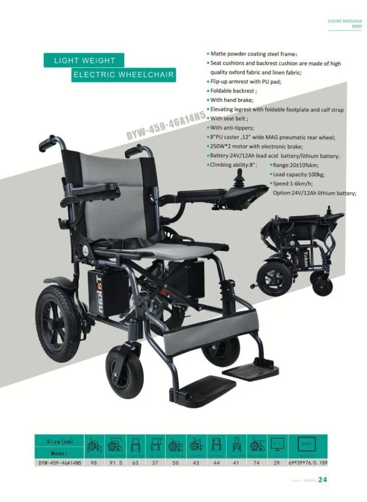 - كرسي كهربائي بطارية جانبية خفيف الوزن