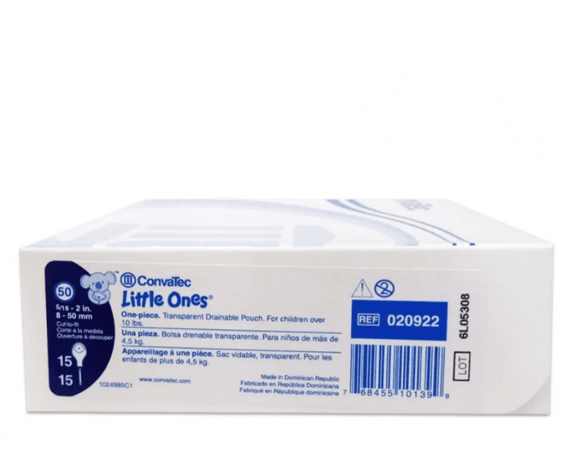 أكياس وقواعد إخراج كونفاتيك Little Ones مخصصة للأطفال الذين يعانون من colostomy (استئصال جزء من الأمعاء الغليظة) أو يعانون من صعوبات في التبرز لأسباب أخرى.