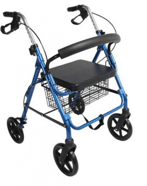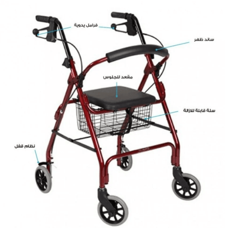 • مشاية مع أربع عجلات ومقعد للمساعدة على المشي.